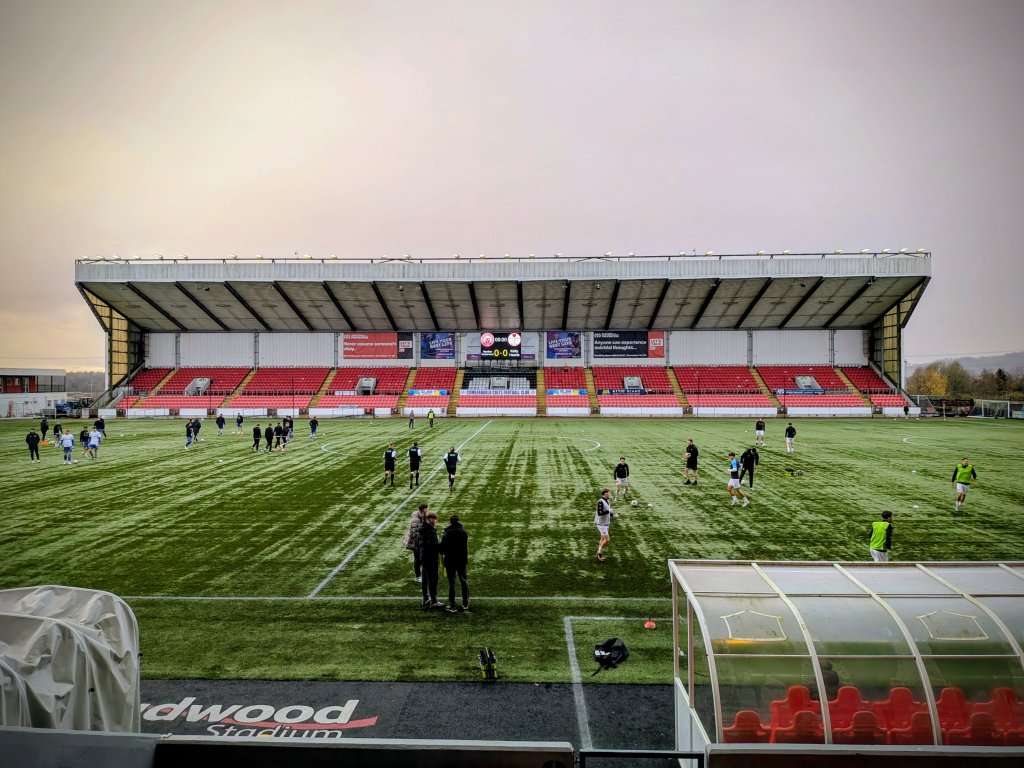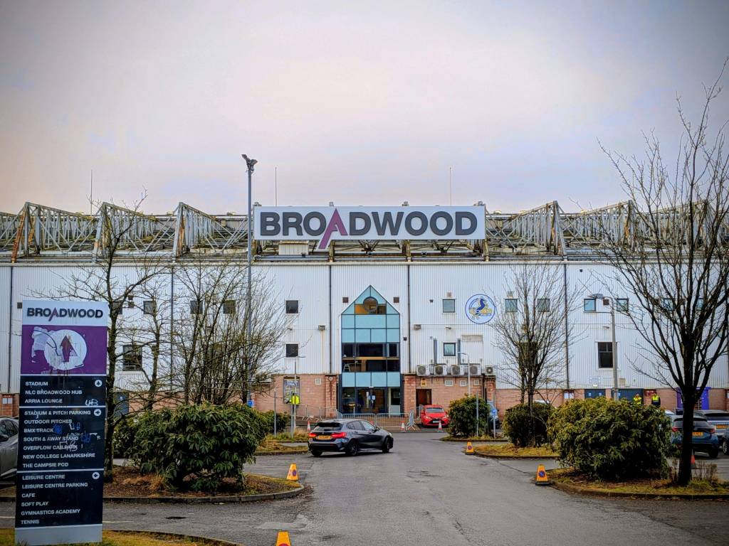 Fortunately I’d left myself enough time in my plans that I still arrived not long after the gates had opened at Broadwood. I made my way into the ground and headed straight out onto the stand. I was the first person there which really says more about Accies attendances than anything else. Back on the Premiership they were averaging crowds of nearly 3,000 and even last season they regularly saw 1,200 people in the stands. This year, as a result of the move 12 miles away from Hamilton and the subsequent boycotts, they have only drawn more than 300 on three occasions. In a stadium that holds around 8,000 it’s not a good look.