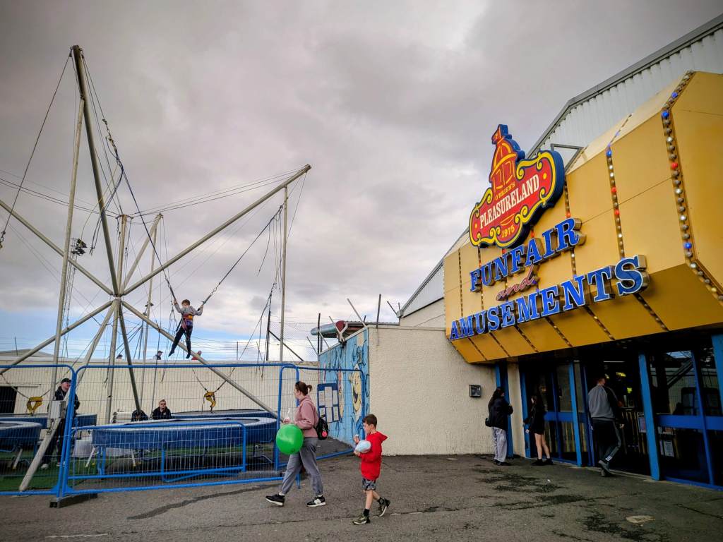 The away end backs on to an amusement arcade which lends that side of the ground it’s name. As you can see in the photo above an enterprising child can take in every other second of the game through some cleverly timed jumps on the trampolines outside. The main entrance for players and club officials also features a memorial to Arbroath’s biggest claim to fame, a 36 – 0 win over Bon Accord that (with the exception of one anomaly) still stands as a world record win in a competitive match. The 140th anniversary of that feat was just yesterday and so a feature about it was prominent in today’s matchday programme.