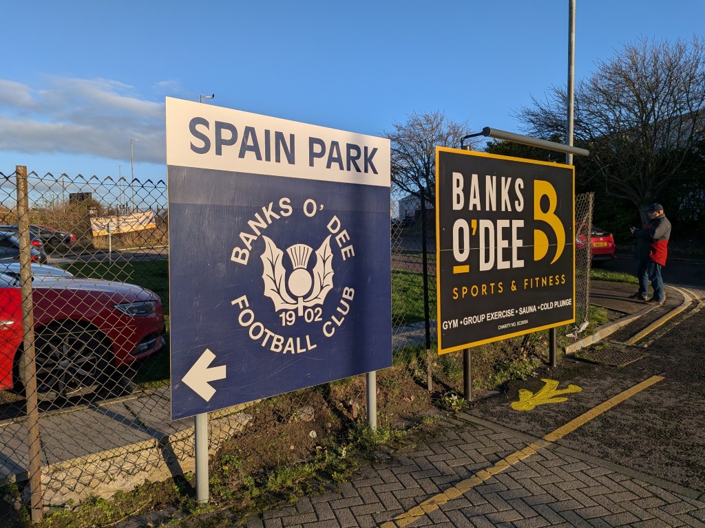 The first of my trips to see a team outside the SPFL. Banks o’ Dee are the third club in Aberdeen and the only one I’ve not yet seen. I have seen their ground though as it’s probably the most visible ground in the city. It sits at one end of a bridge over the River Dee and within touching distance of the railway line to the south of the city so every journey heading down towards the central belt (or back up) offers a glimpse into Spain Park.