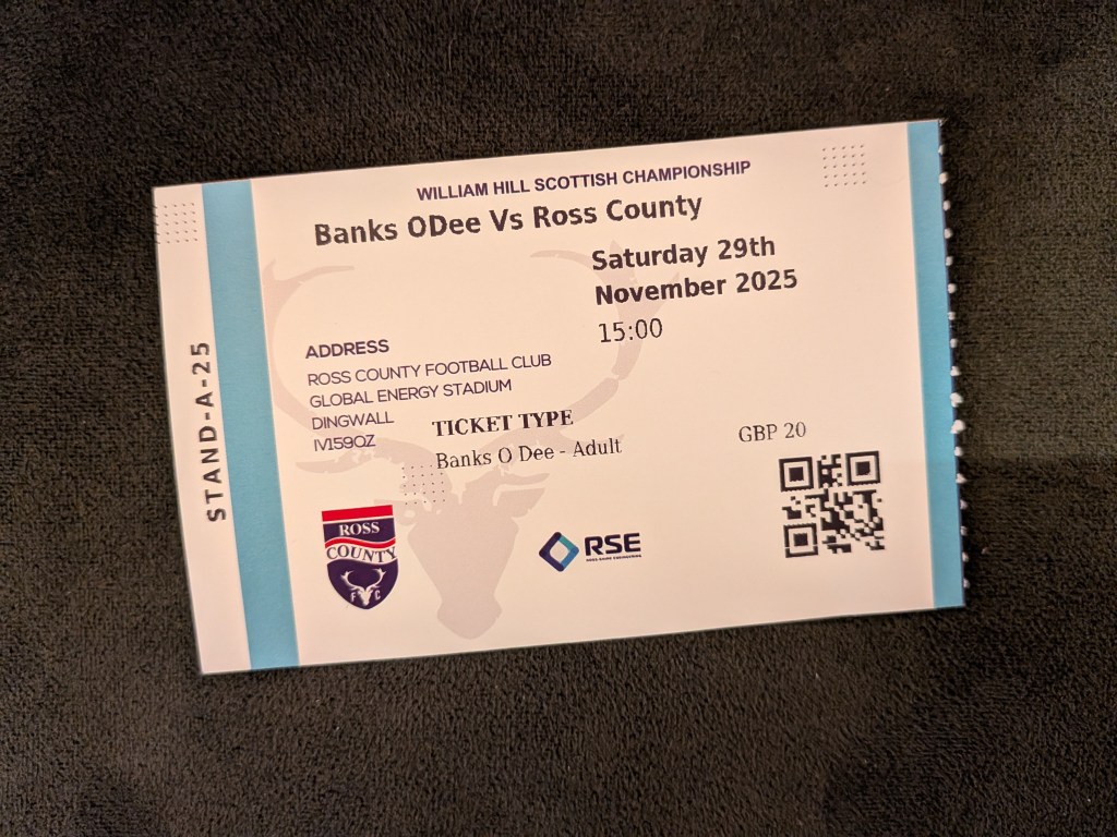 It was already very cold by the time the game got underway but fortunately the forecast rain had held off so we avoided the most miserable possible conditions. From the very start it was clear that there was a gulf in class between the two teams. Ross County were confident playing the ball around whereas Banks o’ Dee were relying on long balls and hopeful chases.